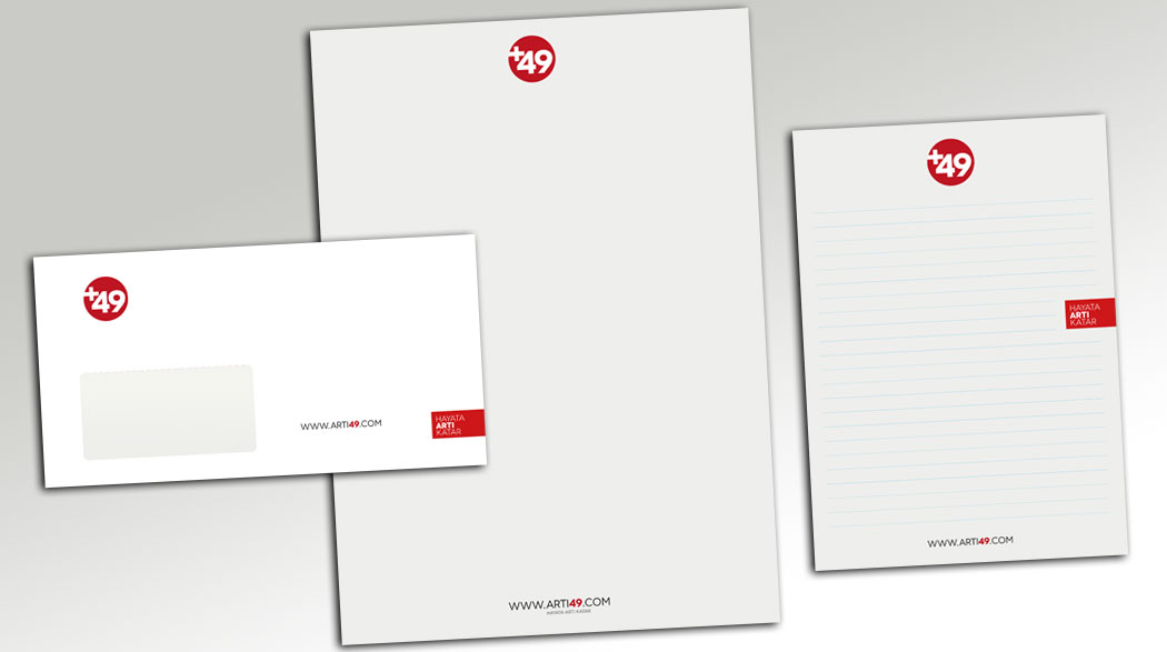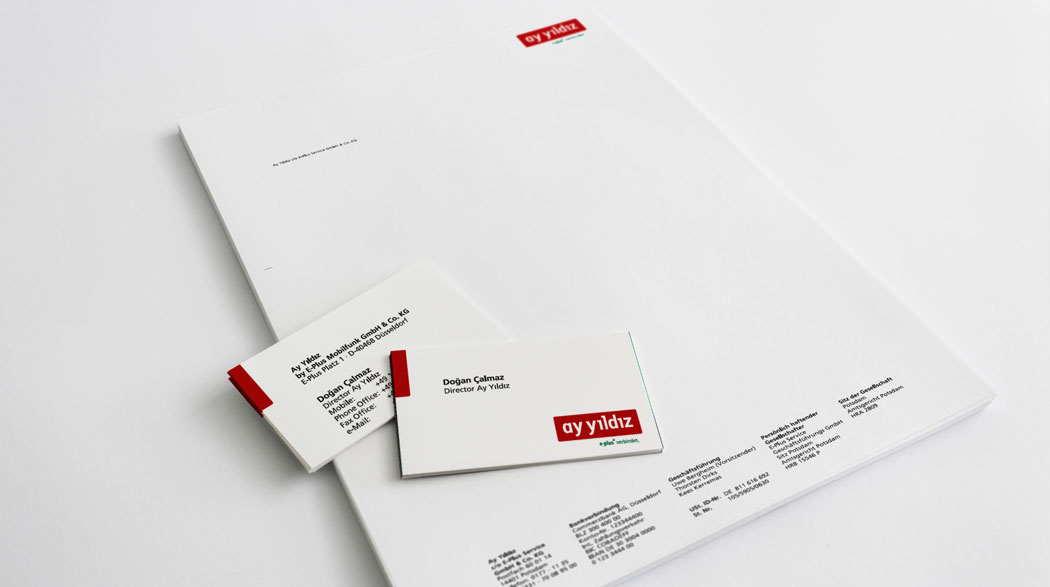 Geschäftsausstattung: Briefpapier, Briefumschlag, Notizblock.