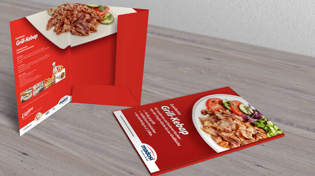 Folder. DinA4, 6-Seitig, Wickelfalz.